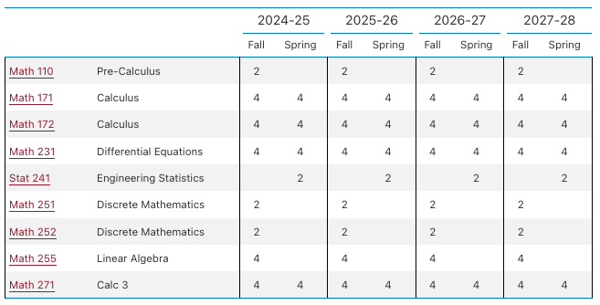 Things can and do change, but this table outlines our current best projection about which courses will be offered when in the next few years.